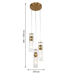 | Внешний вид: | | | Размеры: | высота: 68-150 см, диаметр: 22 см, диаметр основания: 20 см | | Материалы: | металл, стекло | | Цвета: | латунь, прозрачный |
