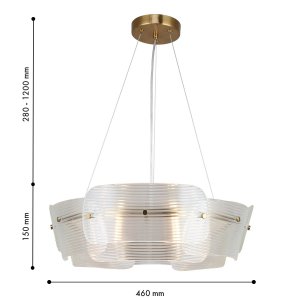 | Внешний вид: | | | Размеры: | высота: 28-120 см, диаметр: 46 см | | Материалы: | металл, стекло | | Цвета: | латунь, прозрачный |