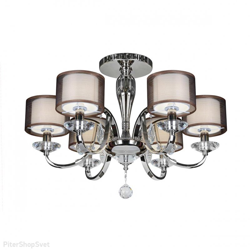 | Внешний вид: | | | Размеры: | высота: 52 см, диаметр: 75 см | | Материалы: | металл, текстиль, хрусталь | | Цвета: | хром, коричневый, белый |
