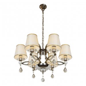 | Внешний вид: | | | Размеры: | высота: 63 см, диаметр: 69 см, подвес: 72 см | | Материалы: | металл, текстиль, хрусталь | | Цвета: | никель, белый |