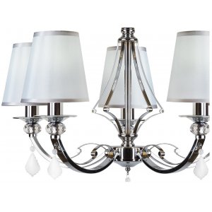 | Внешний вид: | | | Размеры: | высота: 66 см, диаметр: 67 см, цепь: 54 см | | Материалы: | металл, текстиль, хрусталь | | Цвета: | хром, белый |