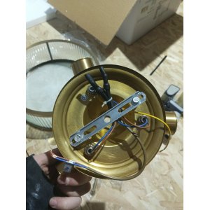 | Внешний вид: | | | Размеры: | высота: 12 см, диаметр: 35 см | | Материалы: | металл, стекло | | Цвета: | золотой, прозрачный, матовый |