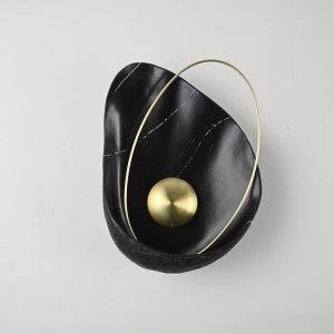 | Внешний вид: | | | Размеры: | высота: 36 см, ширина: 27 см | | Материалы: | металл, полимер | | Цвета: | чёрный мрамор, латунь |