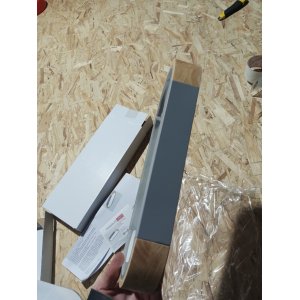 | Внешний вид: | | | Размеры: | высота: 4 см, длина: 35 см, ширина: 14 см | | Материалы: | металл, полимер, дерево | | Цвета: | серый, белый, светлое дерево |