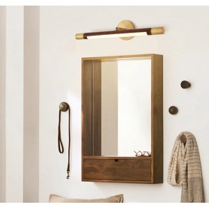 | Внешний вид: | | | Размеры: | ширина: 45 см, выступ от стены: 18 см, диаметр основания: 10 см | | Материалы: | металл, дерево | | Цвета: | латунь, тёмное дерево, тёмное дерево |