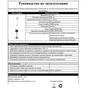 | Дополнительно: | | | Кабель для зарядки в комплекте. Емкость аккумулятора: 1800mA. Время работы при максимальной яркости: 7ч. |
