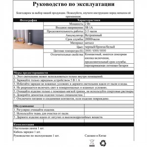 | Дополнительно: | | | Кабель для зарядки в комплекте. Емкость аккумулятора: 2000mA. Время работы при максимальной яркости: 8ч. |
