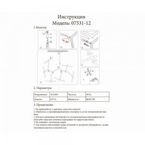 | Характеристики |  | Источник света: | | Лампа: | 12 шт. с цоколем G9 |
