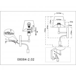 | Внешний вид: | | | Размеры: | высота: 39 см, ширина: 18 см, выступ от стены: 23 см, основание: 15х10 см, высота основания: 2.5 см, высота абажура: 15 см | | Материалы: | металл, ткань | | Цвета: | хром, бежевый |