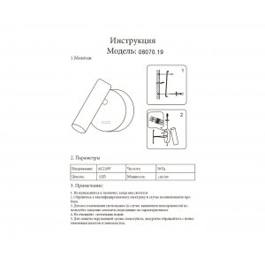 | Характеристики |  | | Источник света: | | | Лампа: | Светодиоды 3 Вт | | Цветовая температура: | 3000K (Белый тёплый) | | Сила света: | 240Лм |