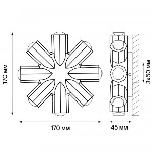 | Внешний вид: | | | Размеры: | диаметр: 17 см, выступ от стены: 4.5 см, диаметр основания: 9.3 см, вес: 0.523 кг | | Материалы: | металл | | Цвета: | чёрный, золотой |