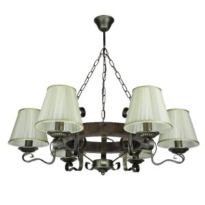 Деревянная подвесная люстра кольцо с абажурами «Афина-6А»