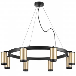 Подвесная люстра кольцо с чёрно-золотыми спотами «Rullo»