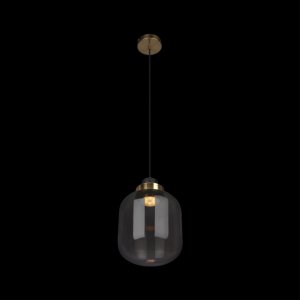 | Внешний вид: | | | Размеры: | диаметр: 18 см, высота без подвеса: 27 см | | Материалы: | металл, стекло | | Цвета: | чёрный, золотой, дымчатый |