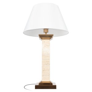 | Внешний вид: | | | Размеры: | высота: 76.2 см, диаметр: 43 см, длина провода / подвеса: 200 см, вес: 9.2 кг | | Материалы: | металл, ткань, камень травертин | | Цвета: | бронза, белый, бежевый |