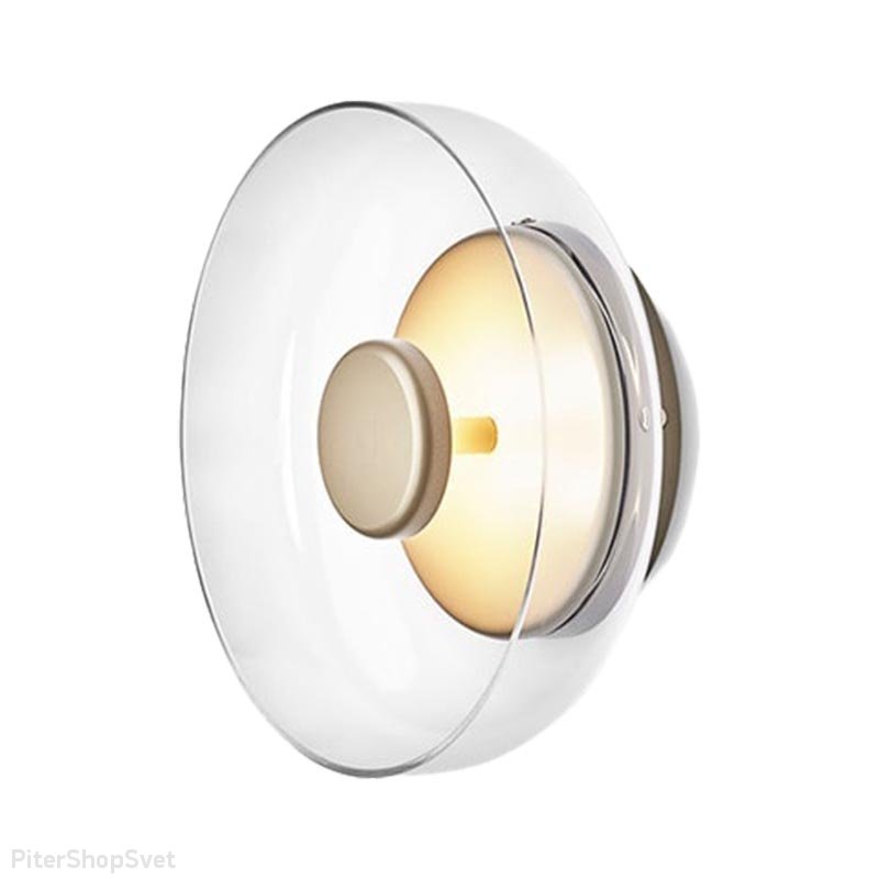 | Внешний вид: | | | Размеры: | высота: 23 см, ширина: 23 см, диаметр: 23 см, выступ от стены: 9.5 см | | Материалы: | металл, стекло | | Цвета: | золотой, прозрачный |