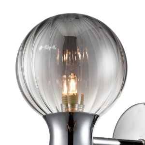 | Внешний вид: | | | Размеры: | высота: 26 см, ширина: 12 см, выступ от стены: 18 см, диаметр основания: 10 см | | Материалы: | металл, стекло | | Цвета: | хром, дымчато-прозрачный |