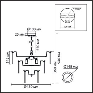 | Характеристики |  | | Источник света: | | | Лампа: | 5 шт. с цоколем E14 |