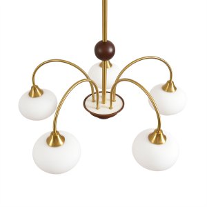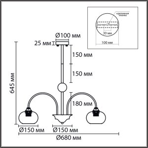 | Внешний вид: | | | Размеры: | высота: 64.5 см, диаметр: 68 см, диаметр основания: 12 см | | Материалы: | металл, стекло, дерево | | Цвета: | латунь, белый, коричневый |
