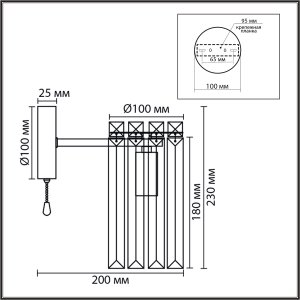 | Характеристики |   |  | Источник света: |   |  | Лампа: | 1 шт. с цоколем E14 |