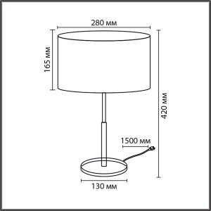 | Внешний вид: | | | Размеры: | высота: 42 см, диаметр: 28 см, диаметр основания: 13 см, провод (полимер): 150 см | | Материалы: | металл, текстиль | | Цвета: | медь, чёрный, бежевый |