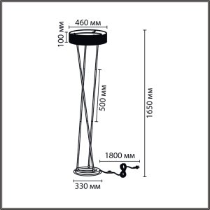 | Внешний вид: | | | Размеры: | высота: 165 см, диаметр: 46 см, диаметр основания: 33 см, провод (полимер): 180 см | | Материалы: | металл | | Цвета: | чёрный |