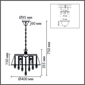 | Внешний вид: | | | Размеры: | высота: 45-75 см, диаметр: 40 см, диаметр основания: 9.5 см, высота основания: 6 см | | Материалы: | металл, текстиль, хрусталь | | Цвета: | белый, прозрачный, латунь |