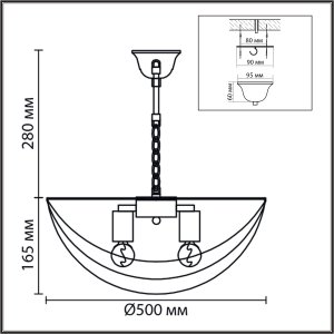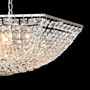 | Внешний вид: | | | Размеры: | высота: 25-44.5 см, диаметр: 50 см, диаметр основания: 9.5 см, цепь: 28 см | | Материалы: | металл, хрусталь | | Цвета: | хром, прозрачный |