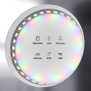 | Характеристики |  | | Светотехнические: | | | Цвет свечения: | RGB | | Индекс цветопередачи: | (CRI, Ra) ≥80? Индекс цветопередачи, коэффициент цветопередачи (CRI или Ra ) - количественная мера способности источника света верно отображать цвета освещаемых объектов в сравнении с идеальным или естественным источником света. Ra принимает значение от 1 до 100 (1 - наихудшая цветопередача, 100 - наилучшая) | | Угол излучения: | 120° | | Световой поток на 1м: | 700 Лм/м | | Световая эффективность: | 33 Лм/Вт |