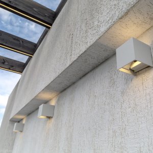 Белый уличный настенный светильник подсветка «EXTRALETI 100 round-GR»