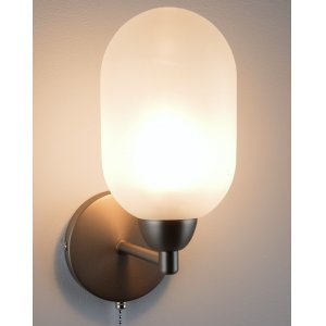| Внешний вид: | | | Размеры: | высота: 23 см, ширина: 10 см, выступ от стены: 20 см | | Материалы: | металл, стекло | | Цвета: | матовый хром, белый |
