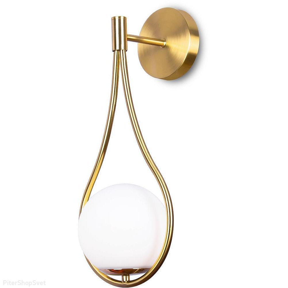 | Внешний вид: | | | Размеры: | высота: 47 см, ширина: 20 см, выступ от стены: 20 см, диаметр основания: 10 см | | Материалы: | металл, стекло | | Цвета: | золотой, белый |