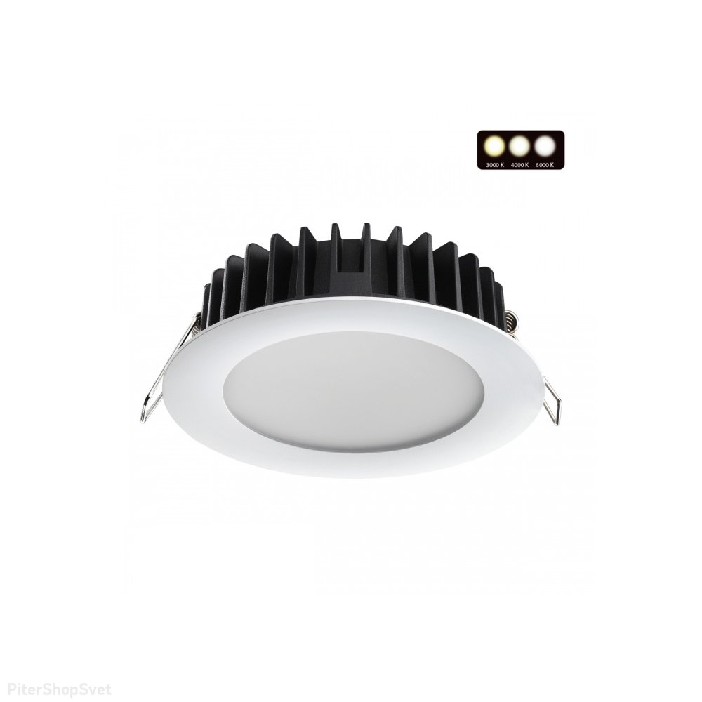 | Внешний вид: | | | Размеры: | высота: 3,6 см, диаметр: 12 см, врезное: 10 см | | Материалы: | металл, полимер | | Цвета: | белый |