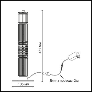 Размеры:высота: 43.5 см, диаметр: 6 см, диаметр основания: 13.5 см, провод (полимер): 200 см, вес: 1.76 кг