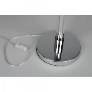 | Внешний вид: | | | Размеры: | высота: 60 см, диаметр: 35 см, диаметр основания: 20 см | | Материалы: | металл, ткань, стекло | | Цвета: | хром, белый, прозрачный |