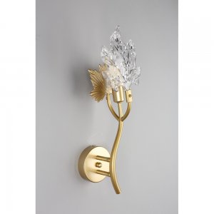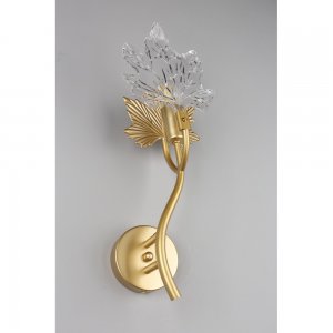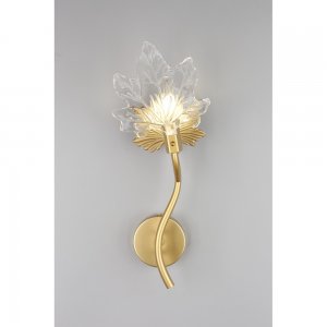 | Внешний вид: | | | Размеры: | высота: 43 см, ширина: 17 см, выступ от стены: 16.2 см, диаметр основания: 10 см | | Материалы: | металл, стекло | | Цвета: | золотой матовый, прозрачный |