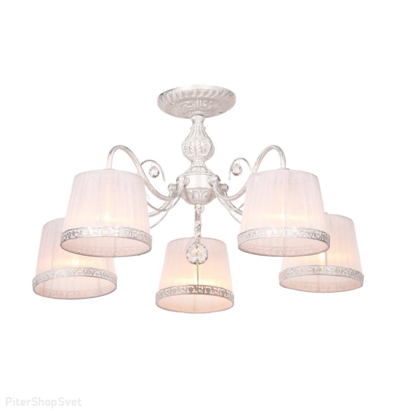 | Внешний вид: | | | Размеры: | высота: 35,5 см, диаметр: 65 см | | Материалы: | металл, текстиль, хрусталь | | Цвета: | белый с серебром |