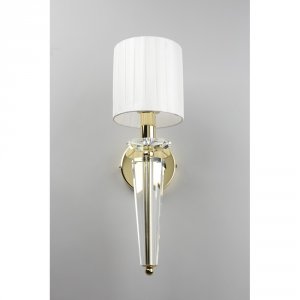 | Внешний вид: | | | Размеры: | высота: 45 см, ширина: 14 см, выступ: 20 см | | Материалы: | металл, текстиль, хрусталь | | Цвета: | золотой, белый, прозрачный |