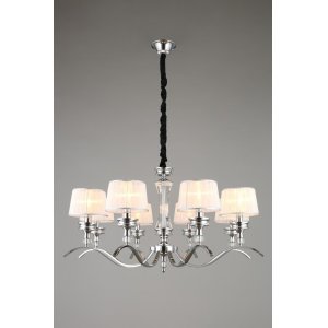 | Внешний вид: | | | Размеры: | высота: 65-110 см, диаметр: 96 см | | Материалы: | металл, текстиль, хрусталь | | Цвета: | хром, белый |