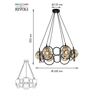 Чёрная подвесная люстра с тонированными плафонами в кольцах «Ariadna» 4074-206