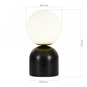 | Внешний вид: | | | Размеры: | высота: 22 см, диаметр: 12 см, диаметр основания: 10 см | | Материалы: | камень мрамор, стекло | | Цвета: | чёрный мрамор, белый |