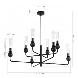 | Внешний вид: | | | Размеры: | высота: 65.5-151 см, диаметр: 100 см, диаметр основания: 12 см | | Материалы: | металл, стекло, камень мрамор | | Цвета: | чёрный, прозрачный, зелёный мрамор |