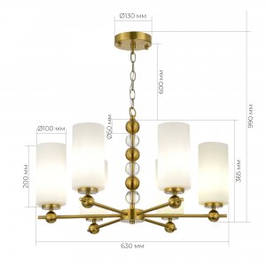 Внешний вид: | | Размеры: | высота: 45-99 см, диаметр: 63 см, диаметр основания: 13 см | Материалы: | металл, стекло | Цвета: | латунь, белый, прозрачный |