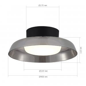 | Внешний вид: | | | Размеры: | высота: 11 см, диаметр: 40 см, диаметр основания: 17 см | | Материалы: | металл, стекло | | Цвета: | чёрный, дымчатый |