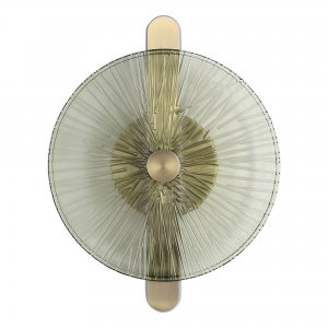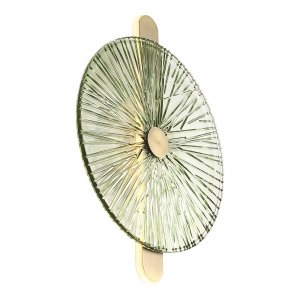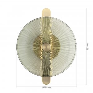 | Внешний вид: | | | Размеры: | высота: 35.3 см, ширина: 28 см, диаметр диска: 28 см | | Материалы: | металл, стекло | | Цвета: | бронза, зелёный |