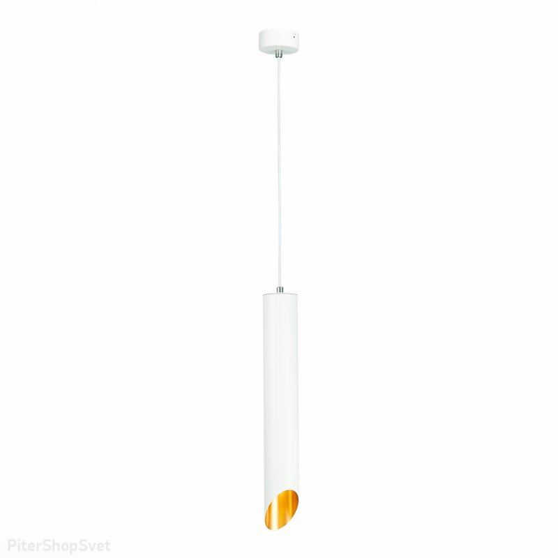 | Внешний вид: | | | Размеры: | высота: 143 см, диаметр: 6 см, плафон: 40 см | | Материалы: | металл | | Цвета: | белый, золотой внутри |