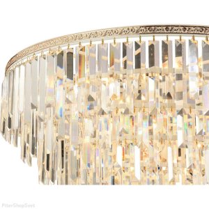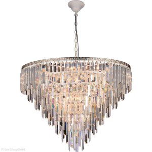 | Внешний вид: | | | Размеры: | высота: 60 см, диаметр: 80 см, цепь: 30 см | | Материалы: | металл, хрусталь | | Цвета: | белый, золотой, прозрачный |