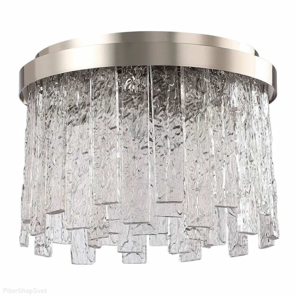 | Внешний вид: | | | Размеры: | высота: 28.5 см, диаметр: 40 см | | Материалы: | металл, стекло | | Цвета: | никель глянцевый, прозрачный имитация льда |