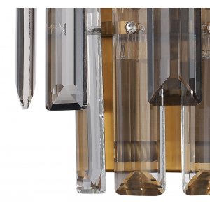 | Внешний вид: | | | Размеры: | высота: 21 см, ширина: 23 см, выступ от стены: 13 см | | Материалы: | металл, хрусталь | | Цвета: | бронзовый, дымчатый, прозрачный |