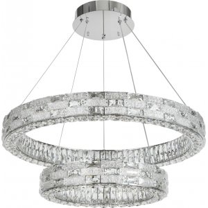 | Внешний вид: | | | Размеры: | высота: 50-180 см, диаметр: 80 см, диаметр монтажного отверстия: 25 см, кольца: 80, 50 см | | Материалы: | металл, хрусталь | | Цвета: | хром, прозрачный |